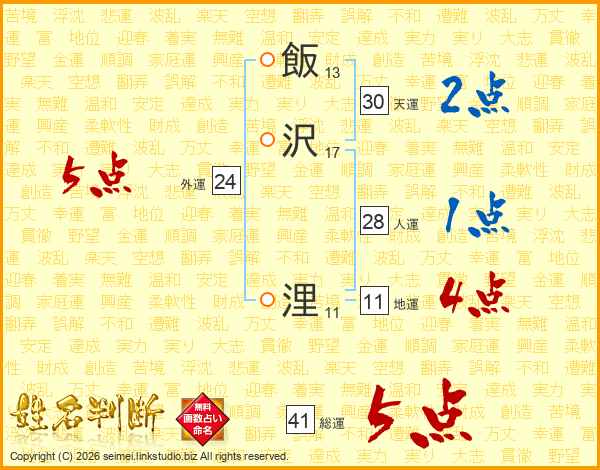 飯沢浬さんの総運は41画の5点!