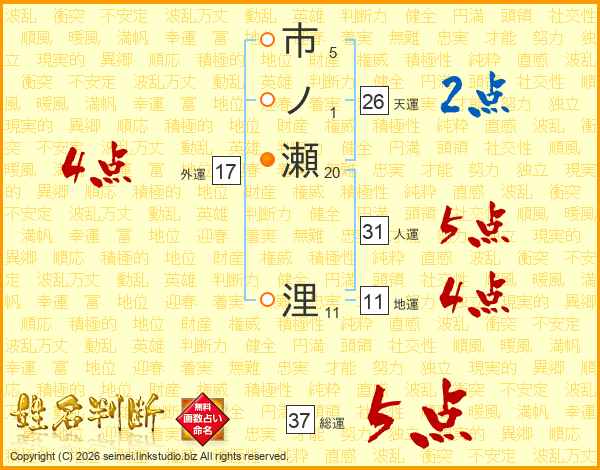 市(5画)ノ(1画)瀬(20画) 浬(11画)