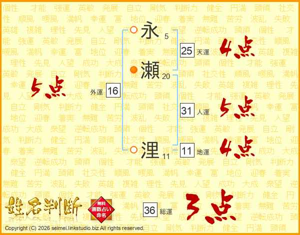 永瀬浬さんの人運は31画の5点!