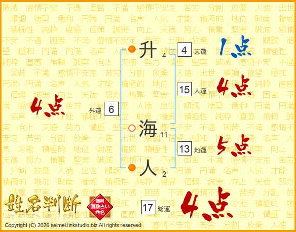 升海人さんの総運は17画の4点!