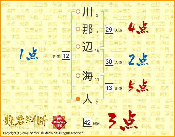 川那辺海人さんの天運は29画の4点!