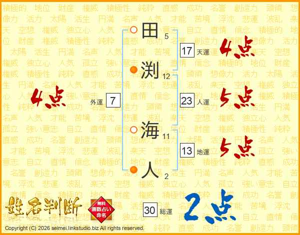田渕海人さんの人運は23画の5点!