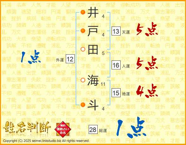井(4画)戸(4画)田(5画) 海(11画)斗(4画)