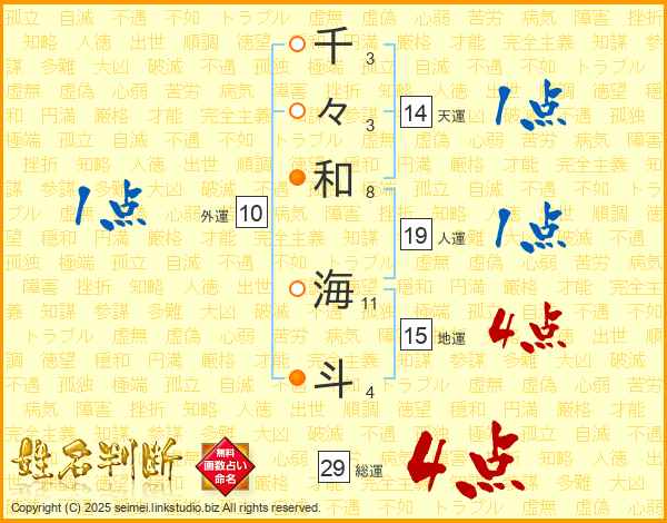 千(3画)々(3画)和(8画) 海(11画)斗(4画)