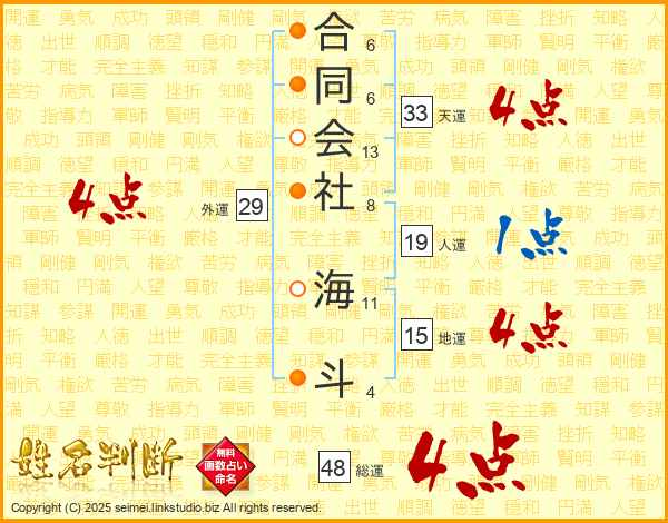 合(6画)同(6画)会(13画)社(8画) 海(11画)斗(4画)