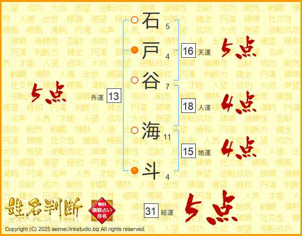 石戸谷海斗さんの総運は31画の5点!