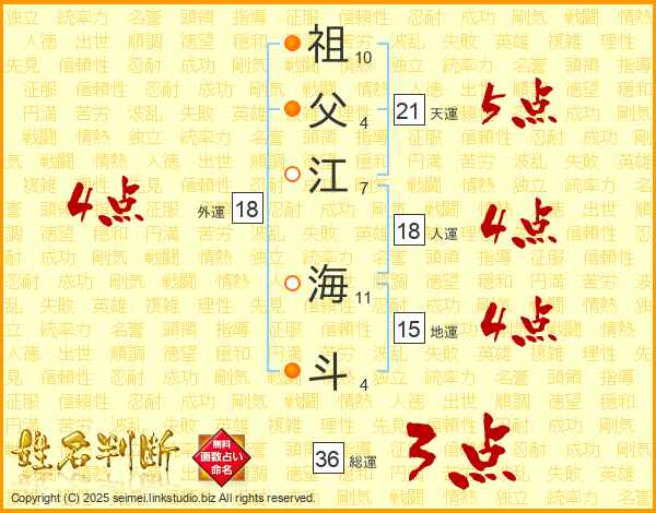 祖(10画)父(4画)江(7画) 海(11画)斗(4画)