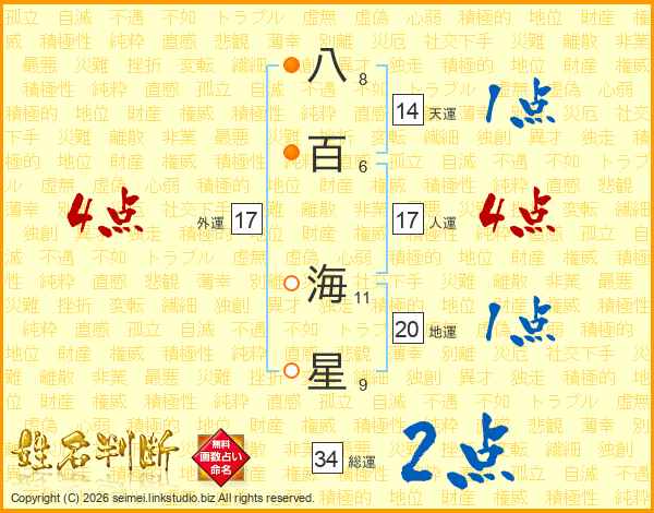 八百海星さんの総運は34画の2点!