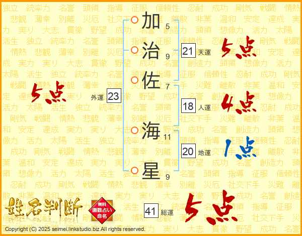 加治佐海星さんの総運は41画の5点!