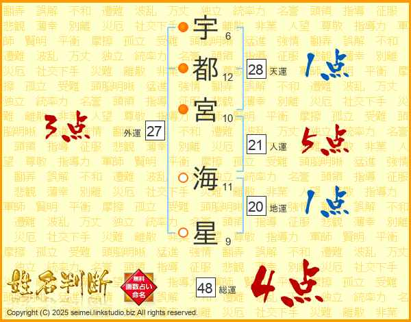 宇(6画)都(12画)宮(10画) 海(11画)星(9画)