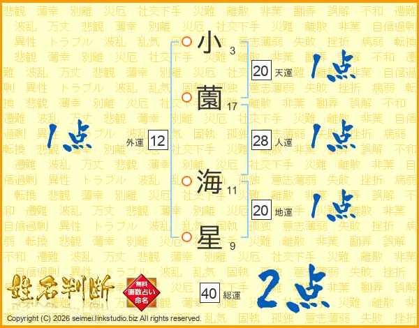 小薗海星さんの総運は40画の2点!