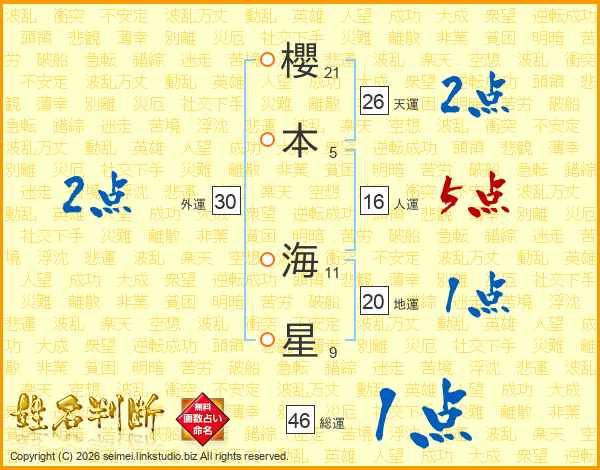 櫻本海星さんの総運は46画の1点!