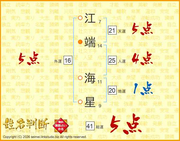 江端海星さんの総運は41画の5点!