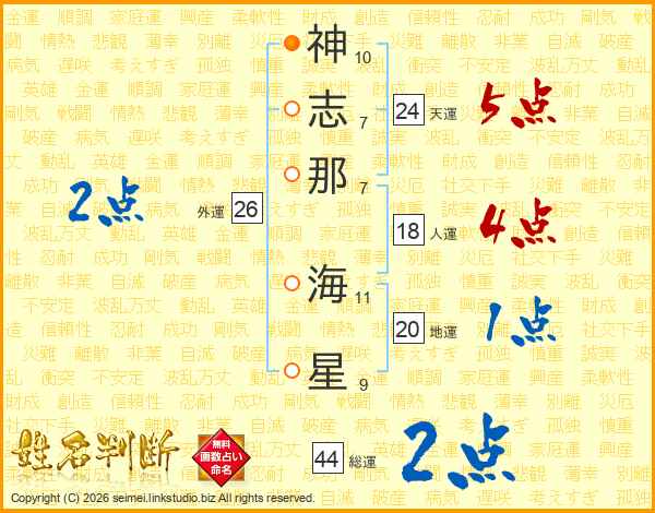 神志那海星さんの総運は44画の2点!