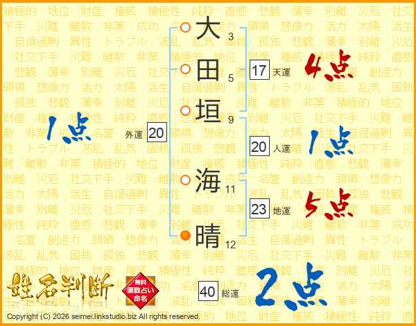 大田垣海晴さんの人運は20画の1点!