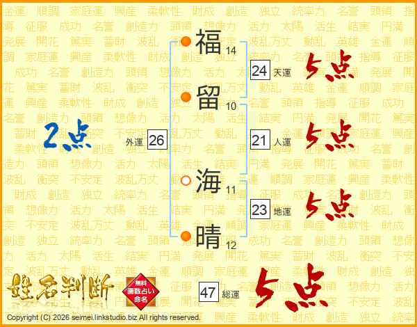 福留海晴さんの総運は47画の5点!