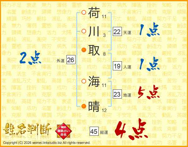 荷川取海晴さんの総運は45画の4点!