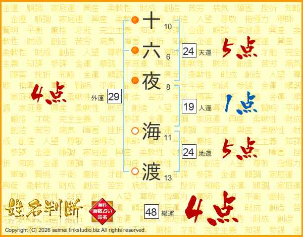 十六夜海渡さんの総運は48画の4点!