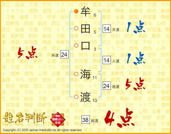 牟田口海渡さんの総運は38画の4点!