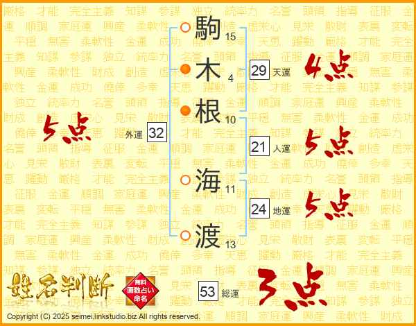 駒木根海渡さんの天運は29画の4点!