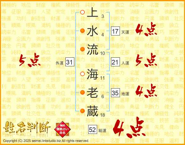 上水流海老蔵さんの総運は52画の4点!