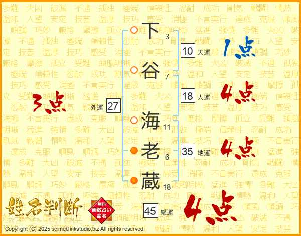 下谷海老蔵さんの総運は45画の4点!
