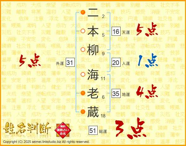 二(2画)本(5画)柳(9画) 海(11画)老(6画)蔵(18画)