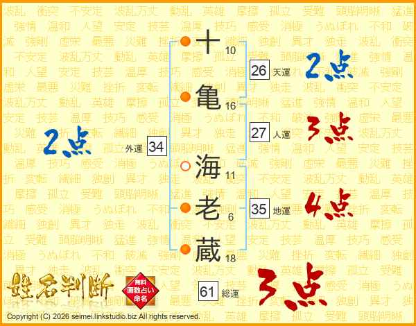 十(10画)亀(16画) 海(11画)老(6画)蔵(18画)
