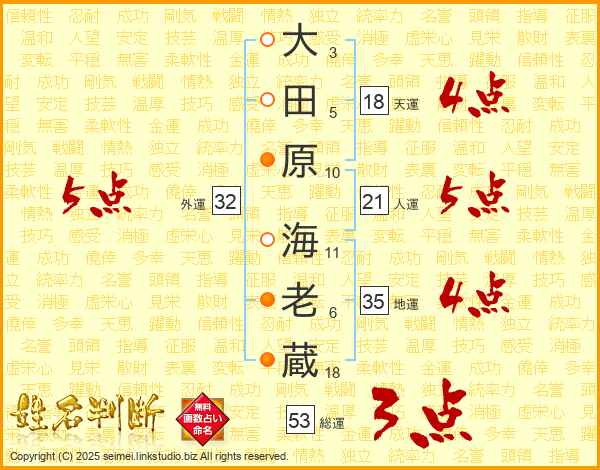 大田原海老蔵さんの人運は21画の5点!