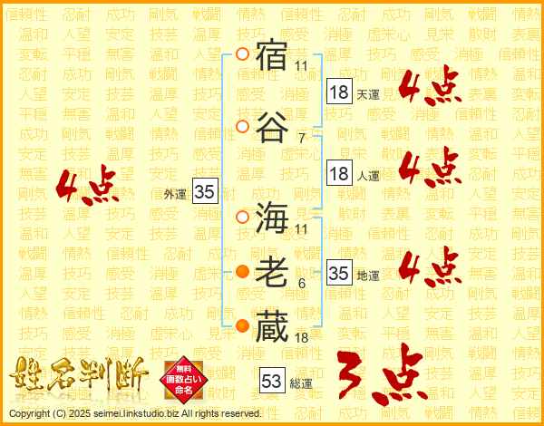 宿谷海老蔵さんの天運は18画の4点!