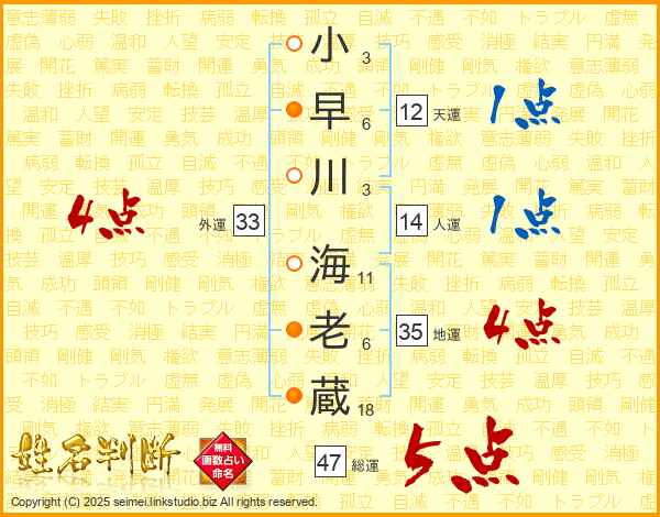 小早川海老蔵さんの総運は47画の5点!