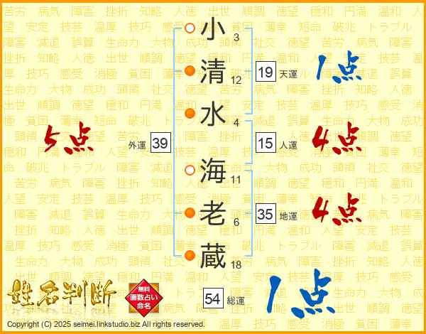 小清水海老蔵さんの総運は54画の1点!