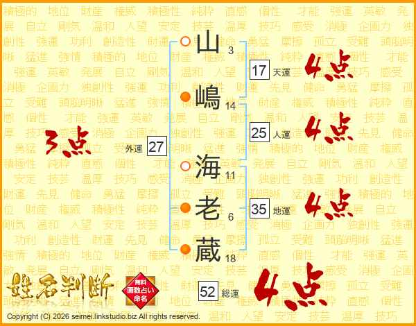 山嶋海老蔵さんの総運は52画の4点!