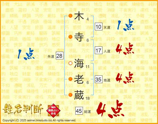 木寺海老蔵さんの総運は45画の4点!