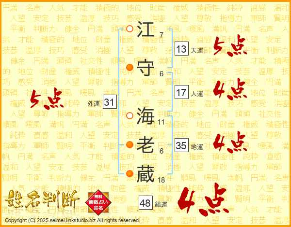 江守海老蔵さんの総運は48画の4点!