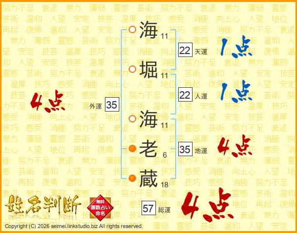 海(11画)堀(11画) 海(11画)老(6画)蔵(18画)