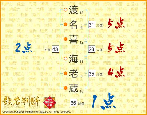 渡名喜海老蔵さんの天運は31画の5点!