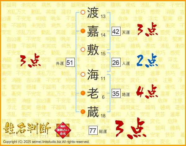 渡嘉敷海老蔵さんの地運は35画の4点!