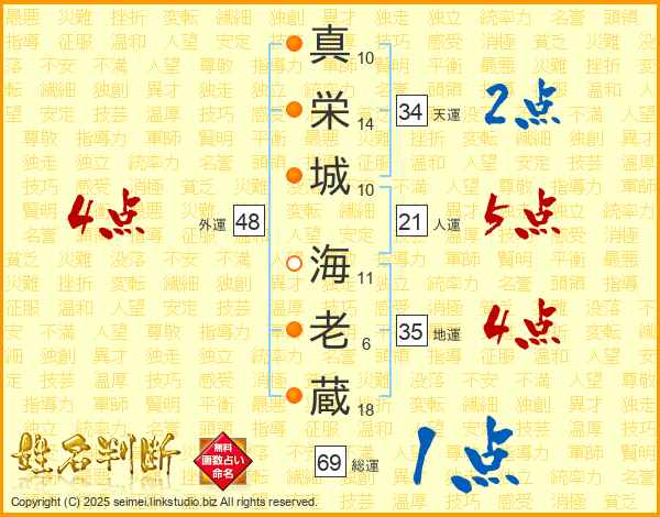 真(10画)栄(14画)城(10画) 海(11画)老(6画)蔵(18画)