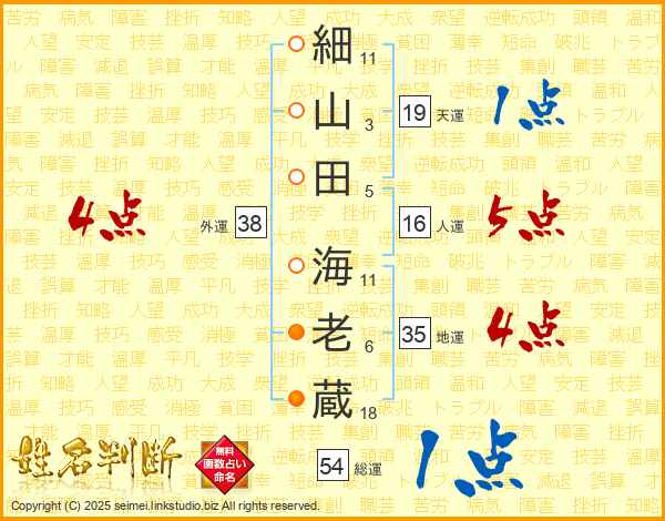 細山田海老蔵さんの人運は16画の5点!