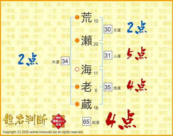 荒瀬海老蔵さんの総運は65画の4点!