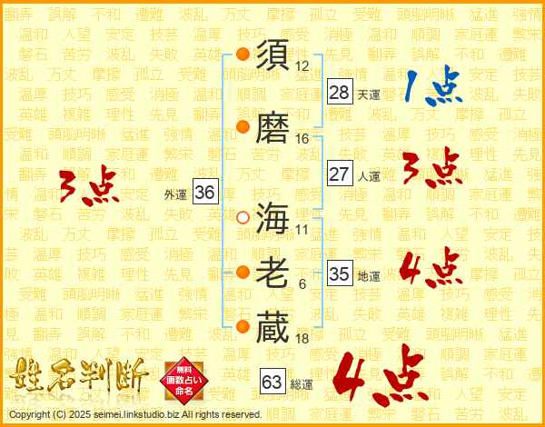 須磨海老蔵さんの総運は63画の4点!