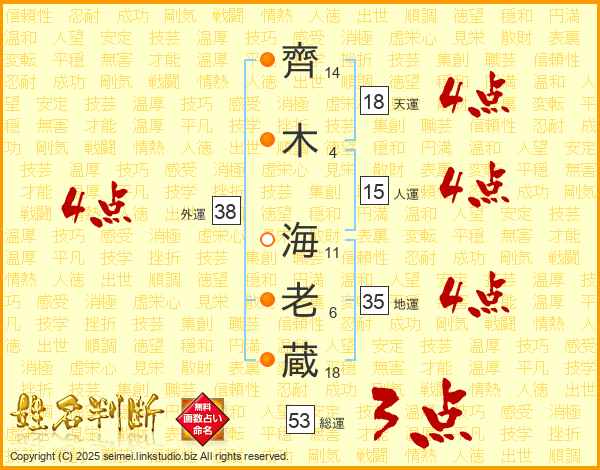 齊(14画)木(4画) 海(11画)老(6画)蔵(18画)