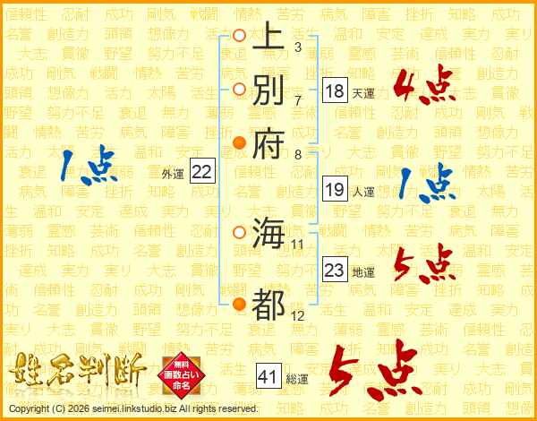 上別府海都さんの総運は41画の5点!