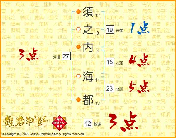 須之内海都さんの総運は42画の3点!