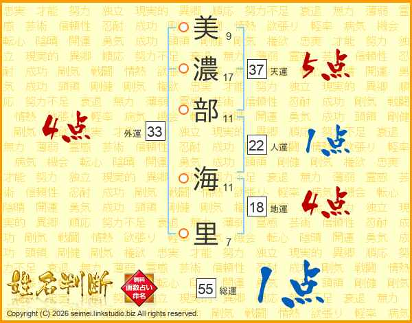 美濃部海里さんの天運は37画の5点!
