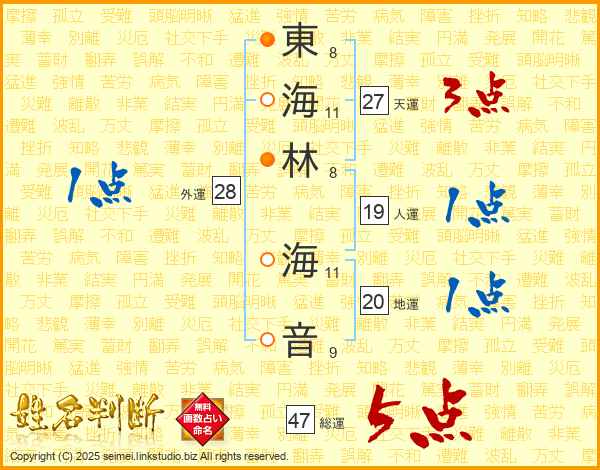 東海林海音さんの総運は47画の5点!