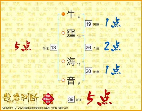 牛窪海音さんの総運は39画の5点!