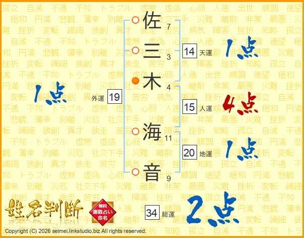 佐三木海音さんの天運は14画の1点!
