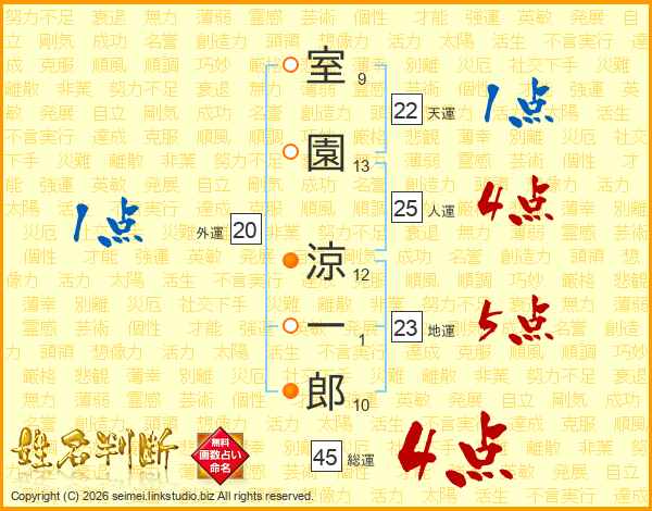 室園涼一郎さんの総運は45画の4点!